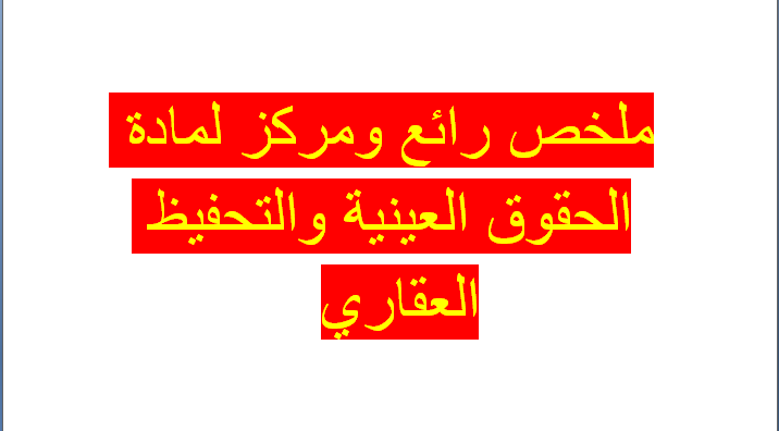 ملخص رائع ومركز لمادة الحقوق العينية والتحفيظ العقاري Pdf