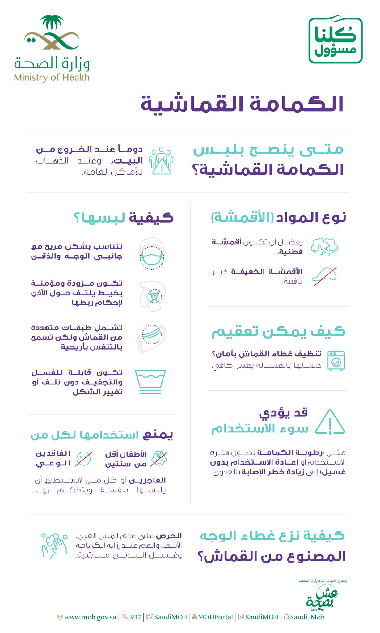 و ز ا ر ة ا لـ صـ حـ ة السعودية On Twitter عند خروجك من المنزل احرص على ارتداء الكمامة القماشي ة الوقاية من كورونا كلنا مسؤول