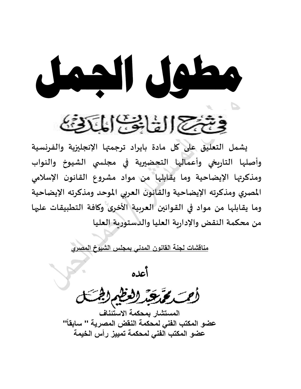 ر و ا ق ال ج م ل 8 مطول الجمل مناقشات لجنة القانون المدني بمجلس الشيوخ